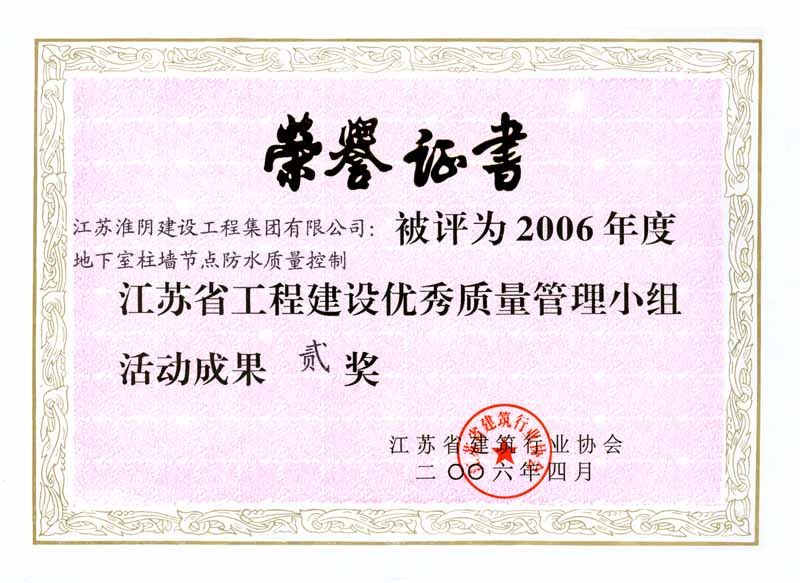 2006年QC地下室柱墙节点防水质量控制(二等奖)