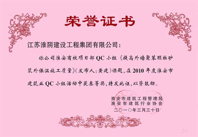 2010年市QC(三等奖)提高外墙聚苯颗粒砂浆外保温施工质量