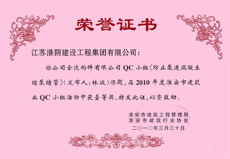 2010年市QC(一等奖)防止泵送混凝土堵泵堵管(金达构件-林