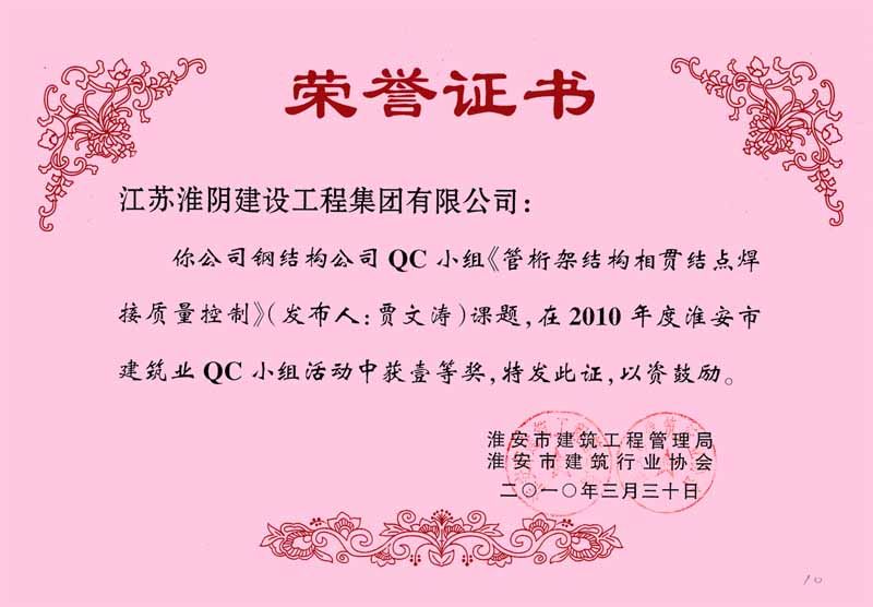 2010年市QC(一等奖)管桁架结构相贯节点焊接质量控制(钢结
