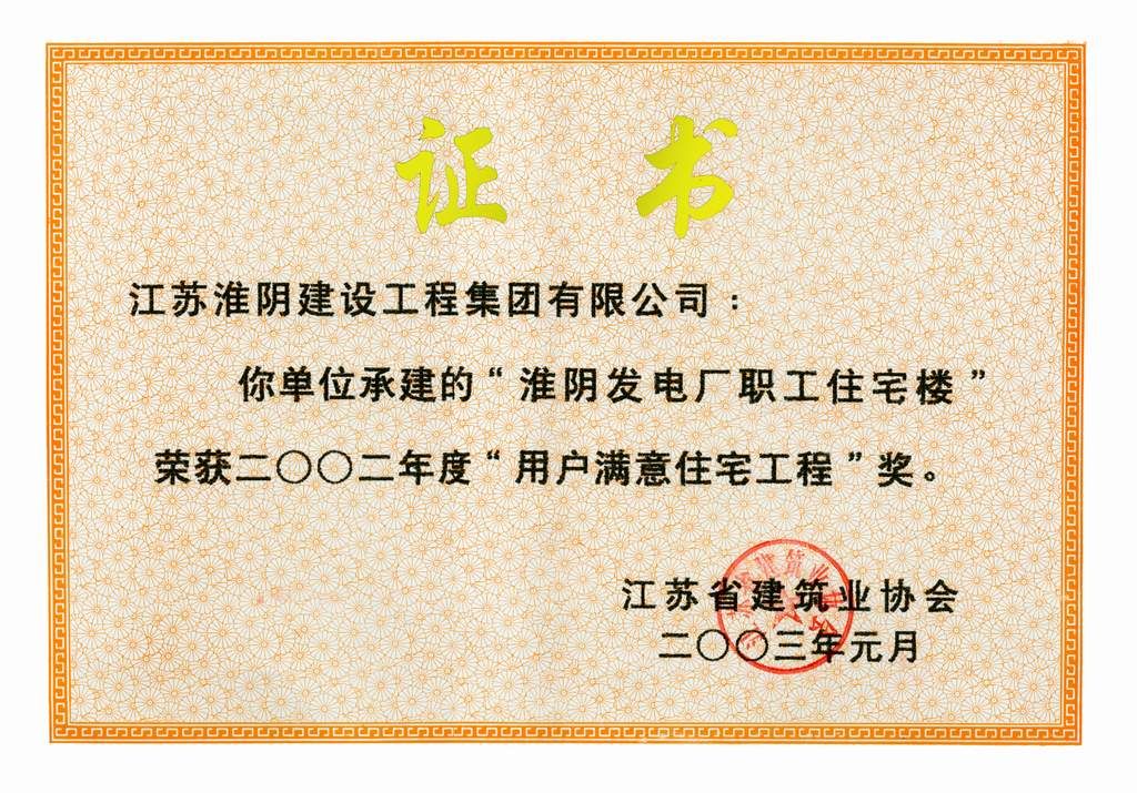 2002年度省用户满意住宅工程淮阴发电厂职工住宅楼