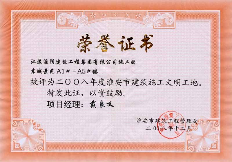 2008年市文明工地东城景苑A1-A5楼-戴良义