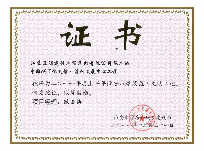2011年文明工地中国城市化使馆清河文展中心