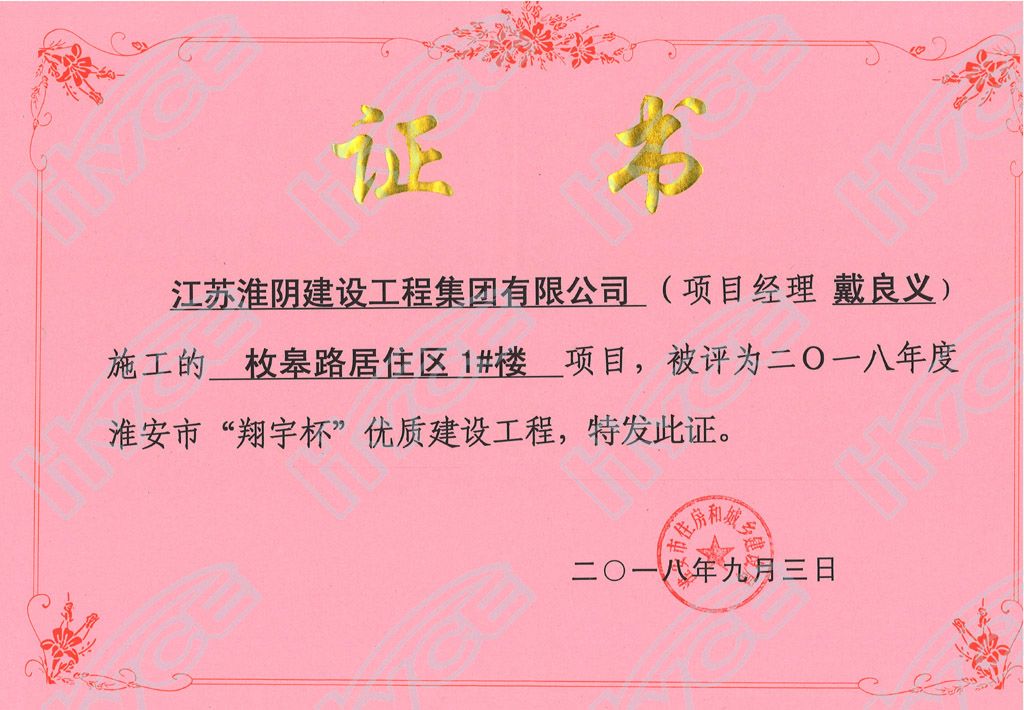 淮安市翔宇杯优质建设工程-枚皋路居住区1#楼