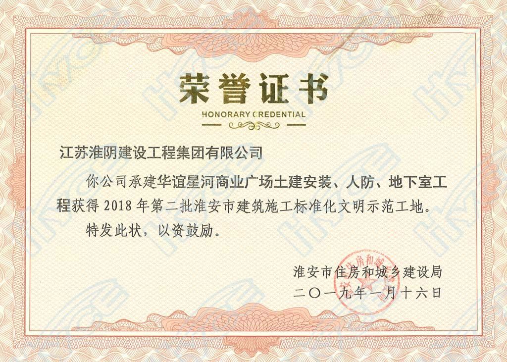 淮安市建筑施工标准化文明示范工地-华谊星河商业广场土建安装、人防、地下室
