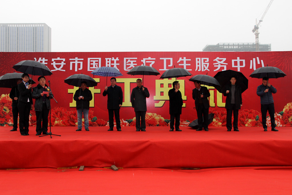 十二月二十六日上午,淮安市国联医疗卫生服务中心项目开工仪式在清江浦区枚皋路北侧举行,市国联集团、市卫计委、清江浦区区委、淮安现代商务集聚区管委会、江苏美城建筑规划设计院及淮建集团等单位的各位领导出席了项目开工仪式。